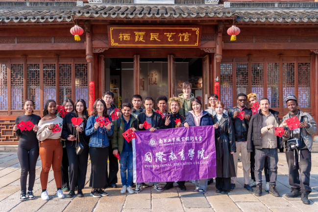 为促进永利官网来华留学生对中国传统文化与南京地域特色非遗项目的了解,丰富留学生们的文化生活,3月19日下午,永利官网国际教育学院联合栖霞区文联、栖霞区外办,在区民间文艺家协会、栖霞古镇-梧桐语协办下,共同组织“指尖千年栖韵寻遗”国际青年探访栖霞民艺馆活动。通过实地参观调研和非遗文化体验等方式,增进文化交流与传播。