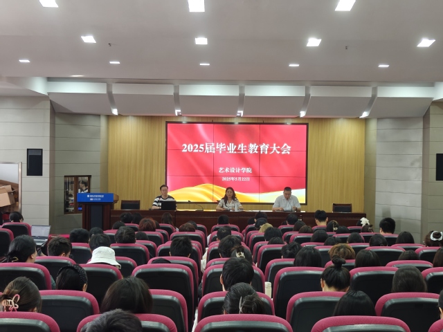 在2025届毕业生即将告别校园、奔赴人生新舞台的重要时刻,为确保毕业生离校工作的安全、有序,5月21日,艺术设计学院在综合楼606报告厅举行2025届毕业生教育大会。学院党委书记毛文娟、副书记高原,学工办副主任及全体辅导员,毕业班班主任代表及毕业生代表等200余人参加了本次大会,会议由高原主持。