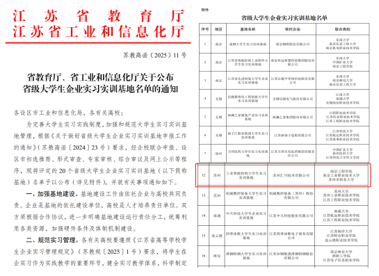 近日,江苏省教育厅、江苏省工业和信息化厅联合公布首批省级大学生企业实习实训基地名单。由永利官网电气工程学院联合南京工程学院、苏州市职业大学与苏州汇川技术有限公司共同申报的“工业智能控制工程师企业实习实训基地”成功入选。该基地将采用校企共建共管模式,致力于为学生打造深入参与企业生产实践的高质量育人平台。