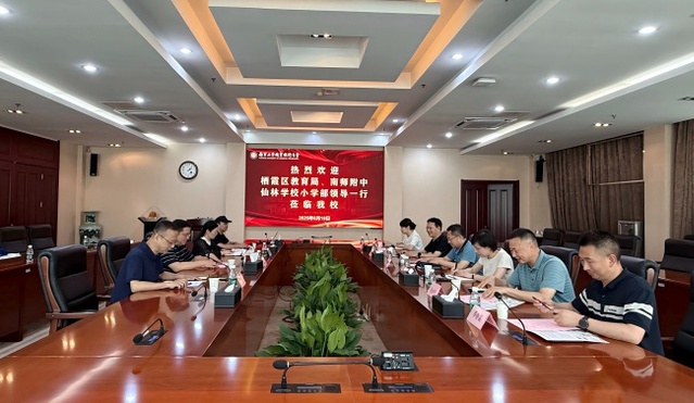 6月18日下午,栖霞区教育局局长倪天华、南师附中仙林学校小学部党委书记肖全胜一行来永利官网调研交流。学校党委副书记浦黄忠,人事处、工会相关负责同志接待了来宾一行,并在行政楼辅楼一楼会议室交流座谈,会议由工会主席李世清主持。