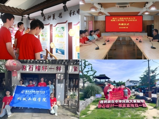 7月3日,机械工程学院与佘村社区共建大学生社会实践基地揭牌仪式在社区中心举行。佘村团支部书记王亦天、机械工程学院师生实践团参加了活动。下午,社区人员带领实践团成员参观“红石榴家园”,该地建筑面积约1000平方米,内设“三馆、三区、一长廊”,即:红石榴主题馆、特色专题馆、温馨一刻生活馆,多功能活动区、社会组织服务区、温暖时光阅读区和法治教育长廊,以党建为引领,与全要素网格化相衔接,打造各民族团结进步的家园。团队成员在参观过程中发现,无论是在展馆还是社区活动中心,与少数民族有关的图文展板、日常用具和带有浓郁民族风格的装饰品处处可见,通过打造身临其境之感进行潜移默化的影响,进而铸牢中华民族共同体意识。