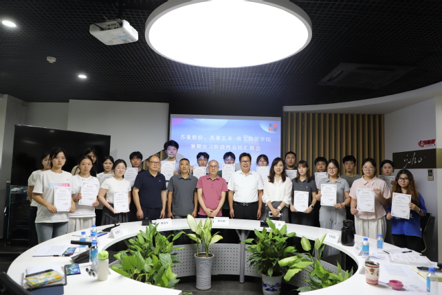为总结实习成效,深化校企协同育人成果,8月1日下午,永利官网商务贸易学院与江苏苏豪国际集团股份有限公司在苏豪国际广场A座415会议室联合举行2025年暑期实习阶段性总结汇报会。本次会议标志着为期一个月的暑期认知实践活动圆满落下帷幕。