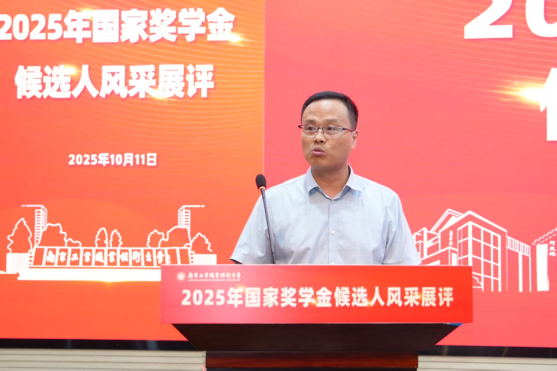 10月11日下午,2025年国家奖学金候选人风采展评在学校学术交流中心报告厅举行。校党委常委、副校长高宏彦出席活动,南京信息职业技术学院学生工作处处长汪继彬、南京邮电大学学生工作处副处长段惠方、南京中医药大学淡安书院副书记陈娟、南京财经大学金融学院党委副书记张士青、浙江经济职业技术学院学生工作处处长杨明峰受邀担任评委。学生工作处相关负责同志,各学院党委副书记、副院长、辅导员代表及200多名学生代表共同参加。