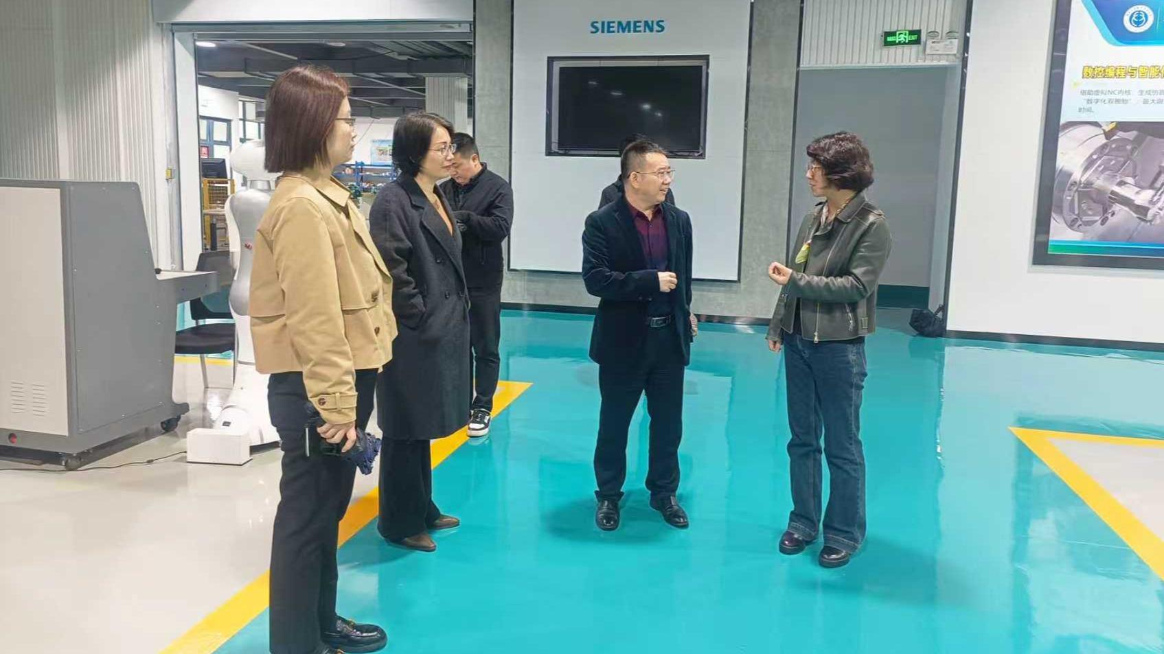 魏萍对来宾的到访表示热烈欢迎,围绕调研主题介绍了学校在职业教育高质量发展领域的实践路径与成效。她指出,学校始终遵循国家职业教育高质量发展要求,精准锚定战略性新兴产业领域布局,持续优化专业集群结构;在产教融合与产业学院建设方面,通过与北京精雕、苏豪控股等龙头企业深度合作,创新构建“校企协同、产教融合”的特色人才培养模式;此外,学校通过搭建校企资源共享平台,推动科研团队与企业实际需求精准对接,有效实现科研成果与产业需求的双向转化,进一步完善校企协同育人机制,为区域产业升级和经济发展持续输送大量高素质技术技能人才。