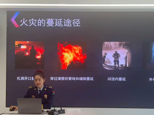 张应秋子为参会人员作消防知识讲座,她结合校园火情特点,以图文并茂的生动案例,给大家系统讲解了火灾预防的基本概念、火灾种类、用电安全常识、如何防火灭火及逃生自救等消防安全知识。她倡导大家不但要自己掌握消防基本知识,提高自身的防范能力,还应该将自己学到的知识传递给家人以及周边的人,为提高全民的消防意识尽一份力。