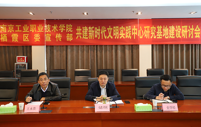 4月12日,由南京市栖霞区委宣传部和南工院马克思主义学院共建新时代文明实践中心研究基地建设研讨会在行政楼辅一楼会议室隆重举行,双方就新时代文明实践中心研究基地的建设内涵与路径、栖霞样本的选择与意义等问题进行深入交流和讨论。
