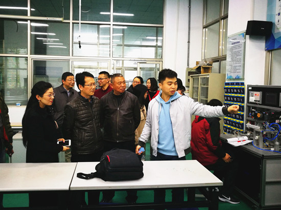 座谈会后,朱建国副校长陪同肖全胜校长一行参观了机械工程学院工业机器人创新实训室、航空工程学院模拟机实训室、创新发展中心礼堂等。