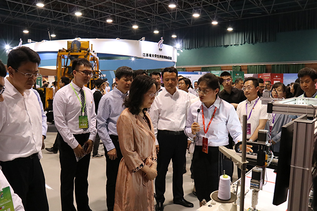大赛期间举办了2019年江苏省大学生科技创新成果展览,来自全省26所高校的39件学生科技创新作品参展,永利官网计算机与软件学院的作品《机器视觉自动送料缝纫机》亮相现场,作品曾获2015年第十四届“挑战杯”全国大学生课外学术科技作品竞赛二等奖,这也是目前为止高职院校的最好成绩。江苏省副省长陈星莺、团省委书记王伟、省教育厅副厅长苏春海等领导莅临永利官网展区,计算机与软件学院毕业生吴琦蕾同学向陈星莺副省长介绍了作品,陈星莺副省长对作品功能实现情况进行了细致了解,并对永利官网大学生创新创业教育工作给予了高度评价。