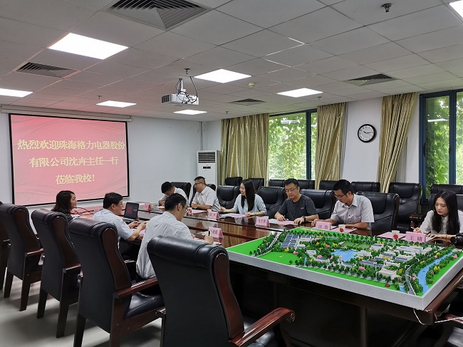 5月24日上午,珠海格力电器股份有限公司文化培训传播中心沈卉主任一行来永利官网交流工作。副校长崔新明、科技处、发展合作处人员参加了会议。
