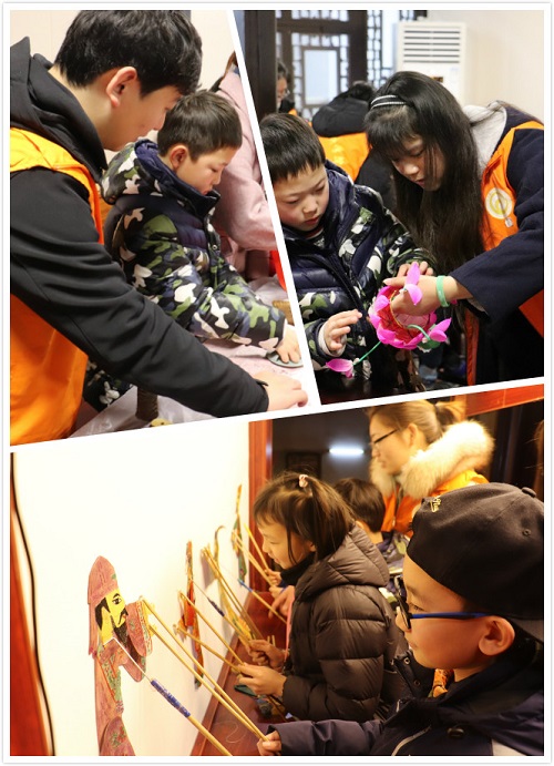 2019年“我是小小传承人”主题冬令营活动由南京市文广新局、南京市博物总馆共同主办,南京市民俗博物馆(即南京市非物质文化遗产博物馆)承办。首日,志愿者们协助馆方人员带领小营员们参观了宜兴博物馆,参与了博物馆的游园活动。志愿者们带领小营员们体验当地非物质文化遗产,汉服、福字书写、猜灯谜、泥塑、抹茶技艺。第二天,志愿者们协助非遗传承人老师给小营员们开展了丰富多彩的非遗课程,泥塑、拓印等非遗文化精彩绝伦“诚实的小孩”表演,让观众感受中国传统艺术——皮影戏独特的文化及艺术魅力。整个活动期间,志愿者以热情到位的服务,带领小朋友们去参与感受各种非遗文化,为即将到来的春节增添中国传统的“年味儿”!在体验中了解非遗,在寓教于乐的学习中传承技艺,志愿者们收获良多。