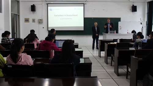 4月27至30日,机械学院邀请了德国达姆施塔工业大学教授、永利官网机电一体化技术专业国际顾问——哈夫·滕博格(Tenberg Ralf Siegfried)来永利官网进行了职业教育教学的能力导向教学法培训授课。汉斯·赛德尔基金会朱爱武老师和永利官网高教所秦咏红老师是此次授课的翻译。来自多个学院部门20余名教师聆听了哈夫·滕博格教授的授课,并获得了滕博格教授亲笔签名的能力导向教学法证书。