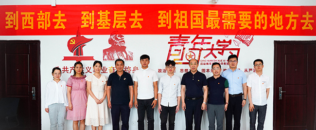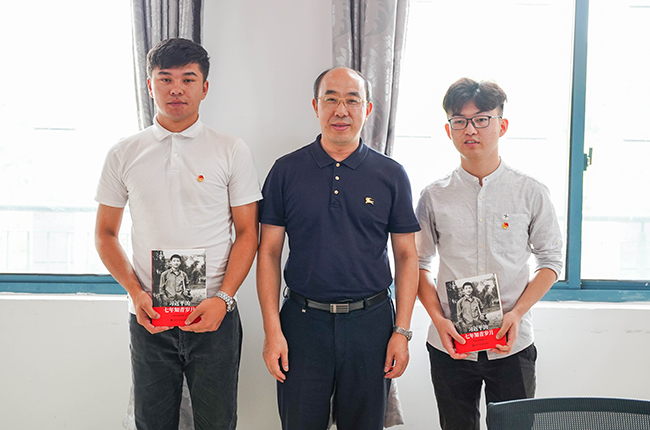 同时,霍雄飞副校长深切寄语永利官网2019年西部计划志愿者李康、甫尔开提.亚尔买买提同学,赠送理论学习书籍《习近平的七年知青岁月》并合影留念。
