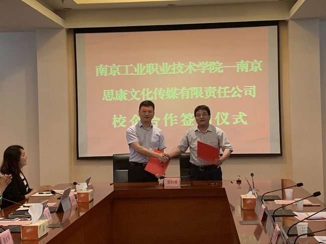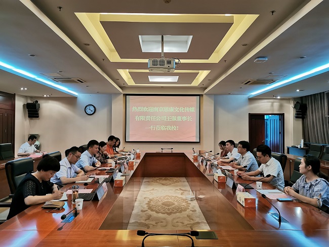 6月14日上午,永利官网与南京思康文化传媒有限责任公司在行政楼辅楼一楼会议室隆重举行校企合作签约仪式,南京思康文化传媒有限责任公司董事长王强、副总经理王阳阳等一行五人以及永利官网校长谢永华、人事处、党政办公室、发展规划办公室、学生工作处、继续教育学院、科技处、发展合作处等部门的负责人共同参加了签约仪式,仪式由人事处处长张莉主持。