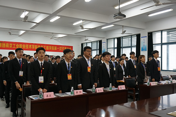 会议在庄严的国歌声中拉开帷幕,电气工程学院党总支书记作大会报告,校团委老师致辞以及学院团总支作大会报告。