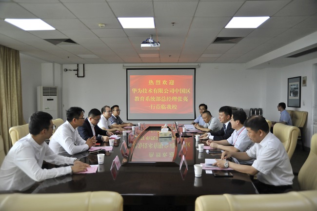 5月19日下午,华为技术有限公司中国区教育系统部总经理张夷、江苏教育行业负责人杨文彬一行来永利官网交流。永利官网校长谢永华、副校长崔新明及科技处、信息化建设与管理处、计算机与软件学院等相关部门负责同志接待了来宾。
