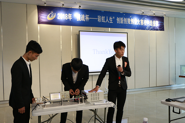 为有效搭建永利官网学生创新创业平台,增强永利官网学子创新创效、就业创业和职业转换能力,引导和激励职业学校学生弘扬时代精神、创新精神和实践能力,发掘和培养一批创新创效创业高素质技能人才。5月16日下午14:30,2018年“挑战杯——彩虹人生”职业学校创新创效创业大赛南工院选拔赛在大学生创新发展中心三楼举行,副校长霍雄飞以及来自学生工作部(处)、团委等部门负责人、指导教师等出席大赛。全国人大代表,国家技能大师,中国航天科工集团镇江海鹰特殊材料有限公司王巍、南京大学电子学院教授、国家电子实验室副主任庄建军、南京工业职业技术学院机械工程学院教授李彩虹担任了本次大赛的评委。来自学校9个学院的12支参赛团队经过初赛、复赛入围进行最终作品的展示和答辩,100余名师生现场观摩了比赛。