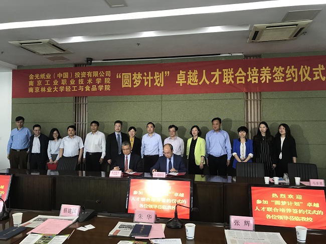 最后,霍雄飞副校长、金永灿院长、江俊德总经理分别代表永利官网、南京林业大学、金光纸业签订了联合培养的三方合作协议。会后,与会人员在黄炎培广场前合影留念并一同参观了校园。