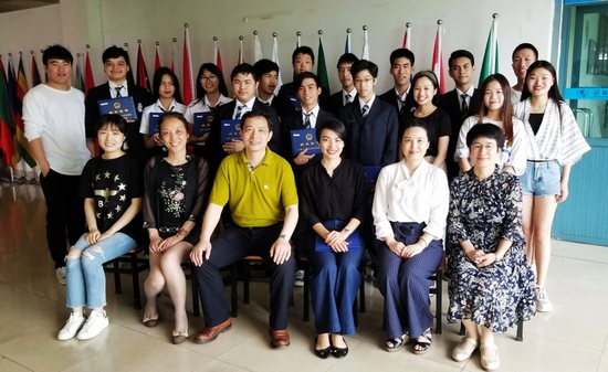 近日,泰国陕迪拉工商管理学院留学生来永利官网进行为期一个月的汉语言及电子商务短期研修项目顺利完成,结业仪式于5月24日乐群楼521教室隆重举行。国际教育学院相关负责人、泰国留学生和中方学生代表参加了活动。