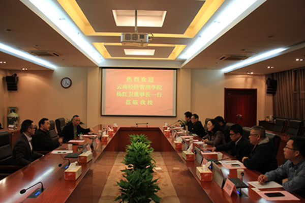 3月12日上午,云南经济管理学院董事长杨红卫同志率领相关领导同志来永利官网交流。永利官网党委书记吴学敏及党政办、科技处负责同志接待了来宾。