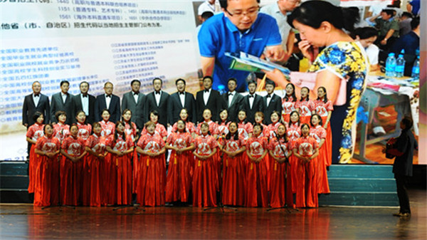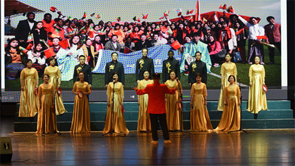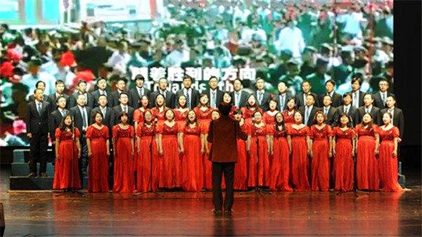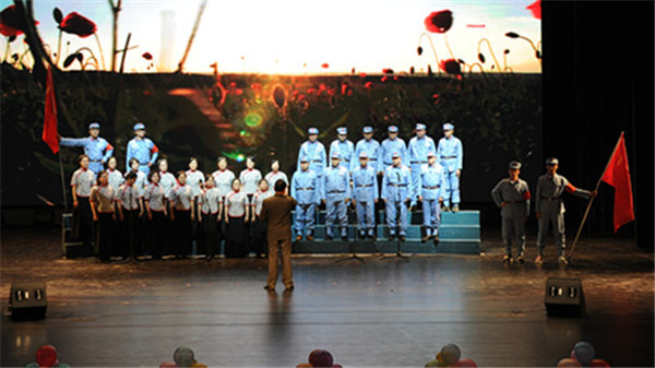 合唱比赛在离退休教师合唱团演唱的《中华职业学校校歌》声中拉开帷幕,13个参赛单位及2个特邀参演单位依次登台演唱,教职工们着装整齐,精神饱满,用男女分唱、领唱、齐唱等各种演唱形式,深情表达了爱党、爱国、爱校之情,歌声或婉转、或激扬、或振奋、或高亢,曲目丰富,精彩纷呈,博得了现场观众的阵阵掌声,进一步提振了精气神,提升了凝聚力和向心力,营造了干事创业的浓厚氛围。学校党委班子全体成员和特邀嘉宾慷慨激昂地朗诵了《跨越百年》以及和学生代表领衔表演的歌曲《我宣誓》,用庄严的入党誓词和铿锵有力的诗句表达了他们热爱党和党的事业、高举旗帜跟党走,携手奋进、续写辉煌的坚定决心。本次比赛的第一篇章“艰苦卓绝,家国情怀”由《同一首歌》、《保卫黄河》、《十送红军》、《在太行山上》、《我们走在大路上》等5首歌曲组成,来自机关第一、二、三、四分会、社科、计算机、机械分会的老师们深切地表达出了对中国共产党艰苦奋斗精神的坚持和对祖国的无限热爱之情;第二篇章“奋发图强,拥抱希望”由来自工程中心、电气、基础、航空、交通、国教分会的老师们倾情演绎的《山丹丹开花红艳艳》、《美丽的草原我的家》、《在灿烂阳光下》、《映山红》、《打起手鼓唱起歌》等5首歌曲组成,老师们用歌声歌颂了祖国大好河山和对生活的美好祝福。第三篇章“不忘初心,砥砺前行”由歌曲《不忘初心》、《走进新时代》、《爱我中华》、《歌唱祖国》组成,分别由艺术、商贸、经管、图书馆、继教、体育分会演唱。歌曲紧扣时代主题,听党话跟党走,为新时代中华民族伟大复兴的巨轮破浪前行高唱凯歌!
