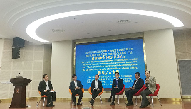 西湖论坛是由浙江省高校创业学院联盟协同国际丝路创业教育联盟主办,由浙江工业大学创业学院联合浙江大学全球创业研究中心共同承办,来自全国百余所高校、科研机构、相关行业的300多名专家学者齐聚一堂,共论创新创业教育。论坛邀请了10多位国内外著名专家就创新创业教育理论、实践探索和专创融合等方面进行主题报告,吴学敏书记应邀参加圆桌论坛。