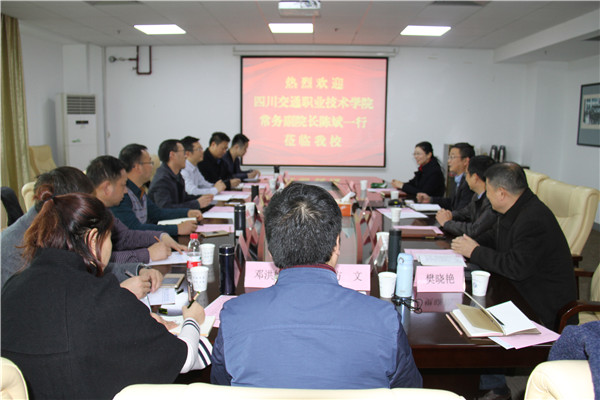 11月29日下午,四川交通职业技术学院常务副院长陈斌率领相关部门负责同志来永利官网进行工作交流。永利官网副校长朱建国、校长助理应晓清及人事处、信息化处等部门负责同志接待了来宾。