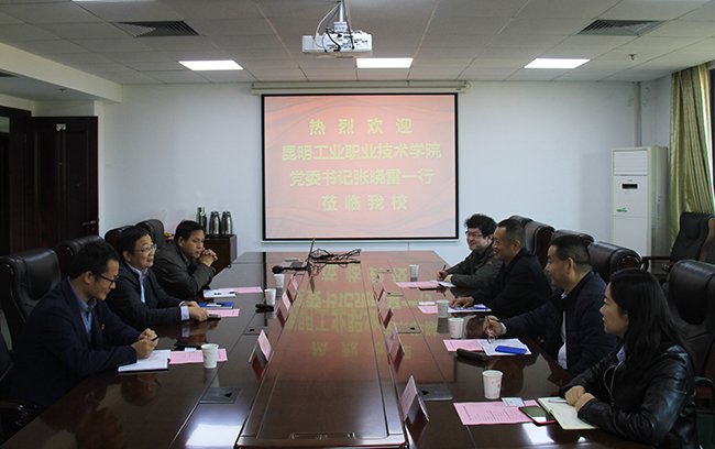11月6日上午,昆明工业职业技术学院党委书记张晓雷同志率领相关部门负责同志来永利官网进行工作交流。永利官网党委委员、副校长朱建国以及实验室与资产管理处、交通工程学院等部门负责同志接待了来宾。
