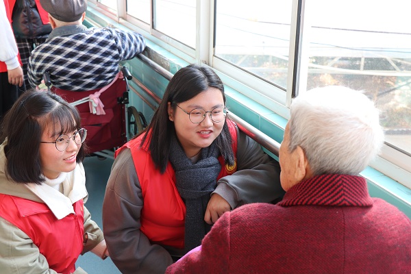 同学们帮助老人们擦拭空调、门窗,扶着老人到院子里晒晒太阳,为他们揉揉肩膀敲敲背,倾听老人们的往事,谈谈我们自己的未来。一位听力不太好的老奶奶说:“你们年轻一代要学会认真做事,小心谨慎,才能好好为国家服务,才能成为国家栋梁。你们还要记住,要自己照顾好自己。”几句简单通俗的话语,却饱含了人生的道理。老人们虽然历经岁月的洗礼,但他们和蔼可爱的笑容依旧那么美丽。陪老人们聊天也让同学们学到了许多人生哲理。虽然时间很短,但每位志愿者都与老人度过了一段快乐的时光。