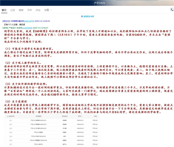 在网络教学过程中,老师们认真施教、全力以赴,采取多种教学手段保障教学质量。环境艺术设计教学部周培,视觉传达艺术设计教学部叶中亮、江卉,工业设计教学部朱云峰,数字媒体艺术设计教学部马晓峰等诸多老师多措并举、创新求变,对学生学习实行了在线打卡、在线签到、在线答疑等行之有效的远程管理办法,全面把控线上教学质量。目前,艺术专业课程网上教学已经过去3周,截至目前,共有36门课程开展了线上教学,28 位老师进行在线教学,891名学生通过电脑或手机聆听教师们网上授课,确保按质按量学习。开课以来,学院督导进行线上听课全覆盖。对老师及时进行线上教学指导,线上教学运行秩序平稳,教师教学热情饱满,学生学习积极性高涨,师生共同努力对线上教学进行了全面的体验与感受和深入的实践与探索,学生们自学能力提速,学习效率增强,“学习内容丰富,教学手段新颖,互助互学热烈,自学能力提高”是广大艺术学子线上学习以来最大的收获与感悟。