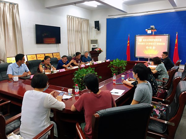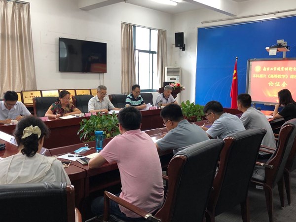 7月30日上午首先召开《大学英语》课程标准论证会,南京工业大学外国语言文学学院副院长、中国英汉语比较研究会外语教育技术专业委员会理事胡元江教授和金陵科技学院外国语学院副院长张志刚教授到会指导。在教研室主任张秀芹汇报、解读新大纲初稿后,两位专家首先就我国大学英语教学的总体状况、指导性政策、发展趋势以及本科职业教育与普通本科大学英语教学的区别等内容进行了说明,然后对永利官网《大学英语》本科课程新标准进行了细致、认真的研究与指导,提出了宝贵的意见与建议。