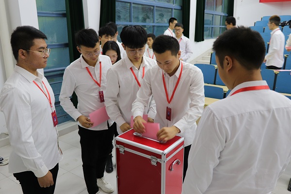 大会进入第二阶段,首先由张展境同学宣读《304永利集团官网入口机械工程学院学生会章程》,由大会代表听取并审议通过。随后大会代表听取了由机械工程学院学生会主席顾晨严所做的2019届机械工程学院学生会工作报告,全场代表以热烈的掌声一致通过报告,肯定了上一届学生会的工作成果,接着宣布聘任曹金玉老师为304永利集团官网入口机械工程学院新一届学生会秘书长。大会进入选举流程,宣读大会选举办法与选举工作人员名单,展示选票、投票箱并详细介绍主席团候选人简历,由大会全体代表投下庄严的一票,并依次上台把选票放入投票箱。同时大会以同样的流程选举出席304永利集团官网入口学代会的代表。大会最后一阶段,公布选举结果,并由杨泽华同学宣读大会倡议书。最后全体起立,奏《国际歌》,本次大会圆满落下帷幕。