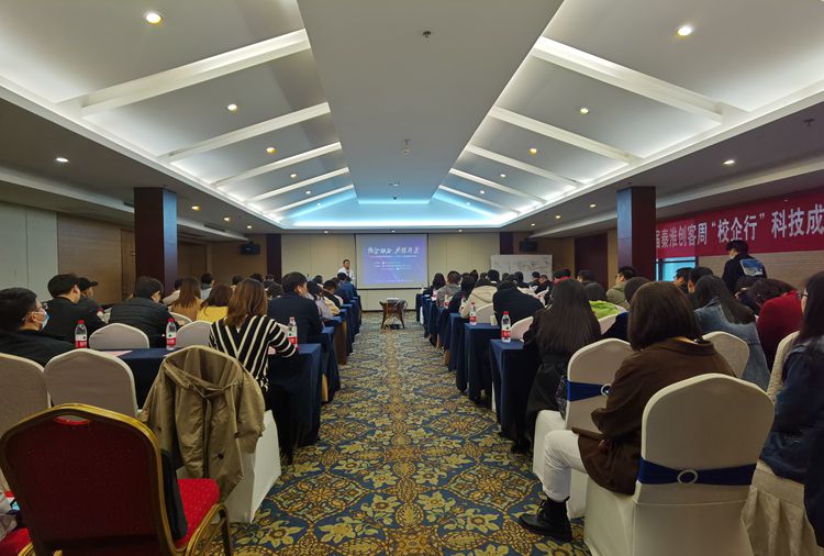 秦淮区科技局局长金界春、副局长孙正广,白下高新管委会副主任、秦淮硅巷部部长朱雪松,南京航空航天大学、南京理工大学、南京农业大学、304永利集团官网入口等高校科技成果转移转化负责人,以及园区管理公司、科技企业、大学生创业企业代表共100余人参加会议。