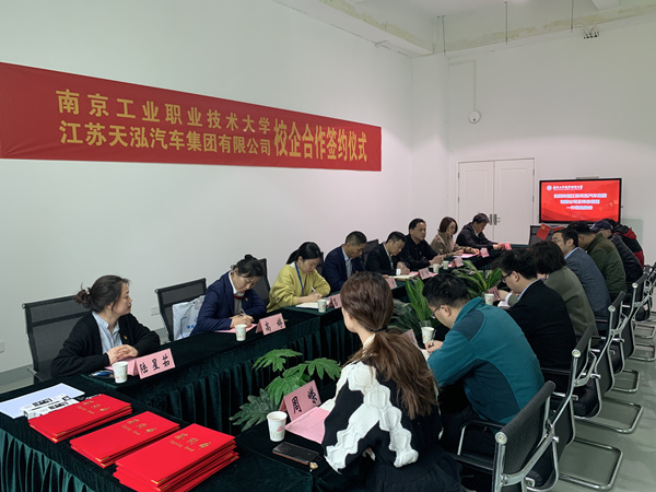 为加强校企合作,充分发挥校企双方优势,推进本科职业教育办学和就业工作,近日,永利官网交通工程学院与江苏天泓汽车集团有限公司校企合作签约仪式在工业中心G4-101室举行。江苏天泓汽车集团有限公司人力资源部总经理王祥等一行8人受邀参加,永利官网科技处、发展合作处副处长孙勇震、交通工程学院党总支书记周昱英、党总支副书记许伟和学院教学骨干参加了此次签约仪式。