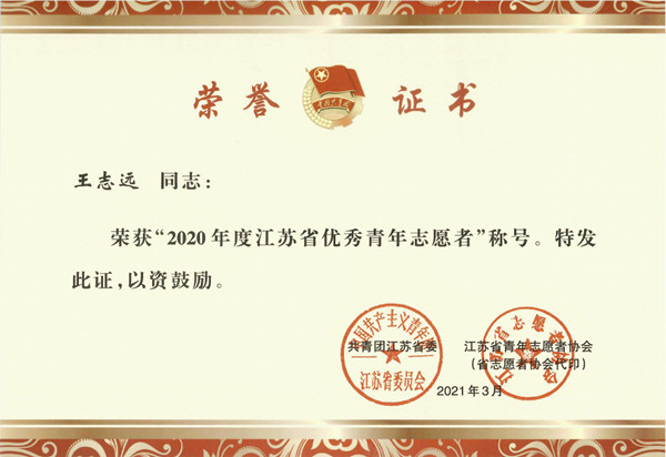 为推动全省青年志愿服务事业深入发展,总结经验、树立榜样、激励先进,引导广大青年参与志愿服务工作,近日,由共青团江苏省委、江苏省青年志愿者协会联合下发了2020年度全省青年志愿者行动评选表彰工作文件,永利官网2个集体、1名个人荣获省级表彰。