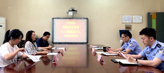 6月3日下午,南京市公安局出入境管理支队警官祝军、陈云鹤、杨睿来校指导永利官网来华留学生管理工作。国际教育学院直属党支部副书记张莉、留学生管理人员参与调研。