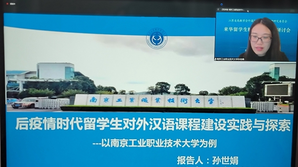 永利官网国际教育学院孙世娟老师作了题为《后疫情时代留学生对外汉语课程建设实践与探索——以304永利集团官网入口为例》的发言。孙老师的“一个中心、两个充分考虑、三个深度融合、四个维度”实践探索经验让与会专家和同仁印象深刻。课程建设始终以服务“一带一路”建设,推动“人类命运共同体”建设为指导思想,面对疫情,勇于担当,使留学生能顺利完成学业,同时传播中国优秀文明和文化,培养知华、友华的来华大学生。孙老师发言中还提出了三个深度融合:语言与语言的深度融合、信息技术与教学内容的深度融合、语言学习与价值引领的深度融合,并从学生、教师、学院、学校四个方面分析了课程建设是有利于学生学习、教师提升、学院管理和学校发展多方受益的教育教学实践。
