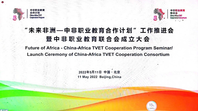5月11日,“未来非洲—中非职业教育合作计划”工作推进会暨中非职业教育联合会成立大会在线上举行,教育部国际合作与交流司副司长贾鹏,非洲技术与应用型大学与学院协会秘书长扎哈·法勒,中国教育国际交流协会副秘书长余有根,坦桑尼亚教育科技部职业教育司司长诺埃尔·姆邦德,中国驻埃及大使馆教育公使衔参赞王胜刚,埃及驻华大使馆文化教育参赞乌麦伊麦·迦尼姆,中国驻南非大使馆教育参赞李旭东,中国驻非盟使团政治事务参赞张民敬出席并致辞祝贺。
