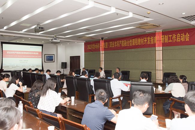 6月10日下午,由教务处和本科职业教育研究院联合举办的“2022年第4场职业技术教育学人论坛暨《职业本科产教融合型课程教材开发指南》研制工作启动会”在行政楼辅楼二楼会议室举行。校党委副书记、《江苏高职教育》主编、二级研究员马成荣作“职业本科产教融合型课程教材的本真话语”专题报告,学校有关部门负责人和各教学单位负责人、分管教学负责人、各课程教材项目负责人及团队成员,以及南京大学出版社有关负责人参加论坛活动。论坛由本科职业教育研究院院长李建国主持。