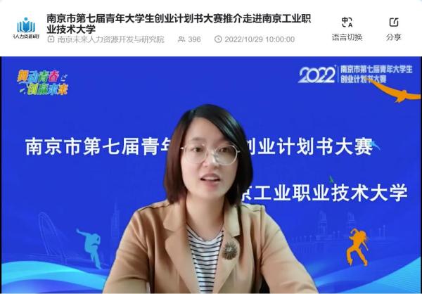 南京市职业技术培训指导中心罗俊博从创业培训政策分享、近两年南京市创业培训工作成绩、青年大学生创业计划书大赛推介等三个方面进行了宣讲,详细说明了大赛概况、报名要求、相关培训、奖励设置等。南京市劳动就业管理中心陈妙珍对南京市青年大学生创业政策进行了进一步说明,2018年以来,南京市持续优化实施“宁聚计划”,从放宽落户、多举措拓宽就业渠道、保障人才安居、降低创业运营成本、创业场地、融资渠道等多方面入手,打造全链条政策服务体系,人才集聚成效显著。