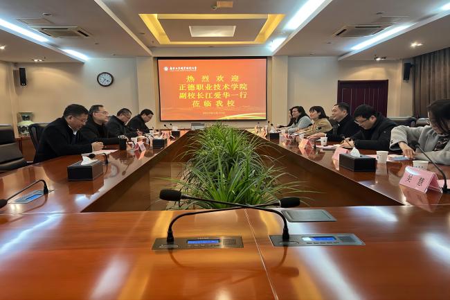 2月22日上午,正德职业技术学院副校长江爱华一行来永利官网考察调研。永利官网党委常委、副校长潘旭海,以及教务处、机械工程学院、航空工程学院等部门负责同志在行政楼辅楼一楼会议室接待了来宾。
