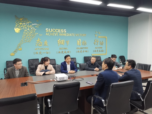 在交谈中,马部长介绍了学校的办学理念、办学定位和人才培养等基本情况,并对英达迪赛公司近几年的发展表示肯定。他表示,校企之间可以在人才及科技服务等方面展开合作:一是实现人才共培,希望学生到企业实习、就业,赋能学生,提高人才培养及学生就业质量;二是优势互补,全方位科技合作。希望校企能在科技成果转化、共建创新平台、项目联合申报、项目论证等方面开展合作。
