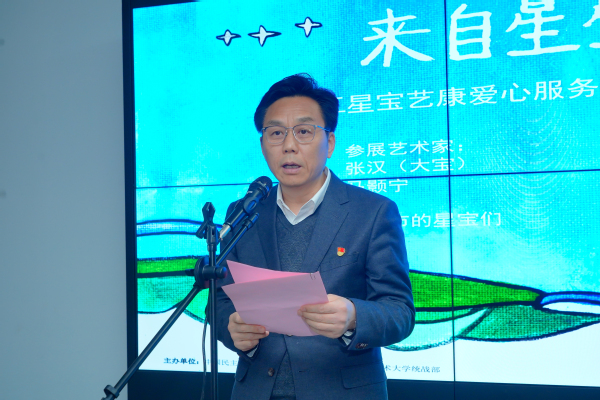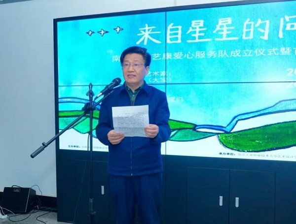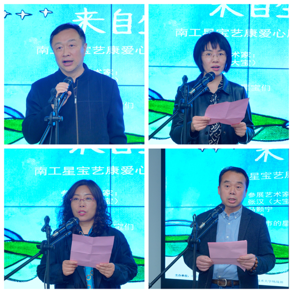 永利官网党委副书记马成荣向各位领导和嘉宾致辞,他介绍了南工发展历程以及民主同盟会的历史渊源,讲述了永利官网民盟南工支部组织委员刘圣进老师用自己的爱心、耐心与恒心,帮助多名自闭症孩子运用艺术画笔开启心灵之门、描绘灿烂星空的感人事迹。他高度肯定了民盟南工支部用艺术的方式为孤独症儿童开启心扉,打开交流之门,帮助他们绘就出七彩的人生的举动。马成荣指出,学校将一如既往地大力支持南工星宝艺康爱心服务队的工作,不辜负民盟省委、民盟市委、栖霞区委领导对我们的支持和厚望。