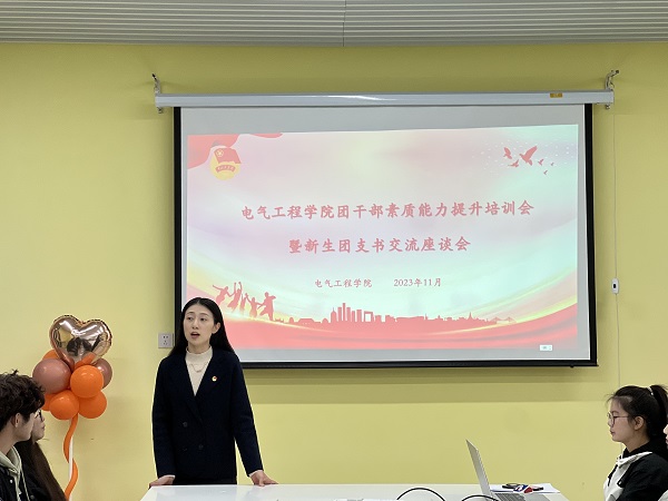 11月22日,电气工程学院团委在大学生创新发展中心107室举办了“团聚青春 凝心铸魂”团干部素质能力提升培训会暨2023级新生团支书交流座谈会,学院辅导员康荣、校团委学生兼职副书记李苏娴、校团委组织部负责人杨秋香、院团委学生兼职副书记李恒、院优秀团支书代表、新生团支部书记、社团团支部书记共同参加会议。会议由学院团委书记史雪冰主持。