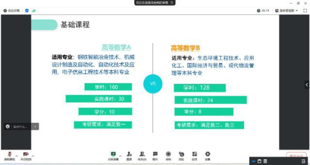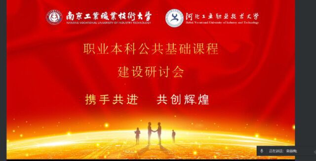 3月29日下午,永利官网公共基础课部与河北工业职业技术大学基础教学部开展了职业本科公共基础课程建设研讨会。河北工业职业技术大学基础教学部主任郑瑞芝、副主任刘娟音、数学教研室主任李娟、英语教研室主任栾丽梅,及永利官网公共基础课部主任金跃强、副主任江颖、大学英语教研室主任史其慧、大学数学教研室副主任王玲参加了在线研讨会。双方围绕职业本科数学、英语学科的课程体系设置,师资队伍建设、教材建设、在线资源假设、科研工作、学生升学与考级等方面开展了交流讨论。