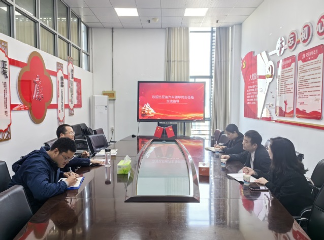 4月9日,比亚迪汽车售后服务事业部、售后培训部技术课程开发科科长任鹏,中车云商市场部项目经理贾盈波、魏芳一行3人到访永利官网交通工程学院,开展精诚英才项目巡查,并进行校企交流。交通工程学院院长王文凯和项目教师代表参加了交流。