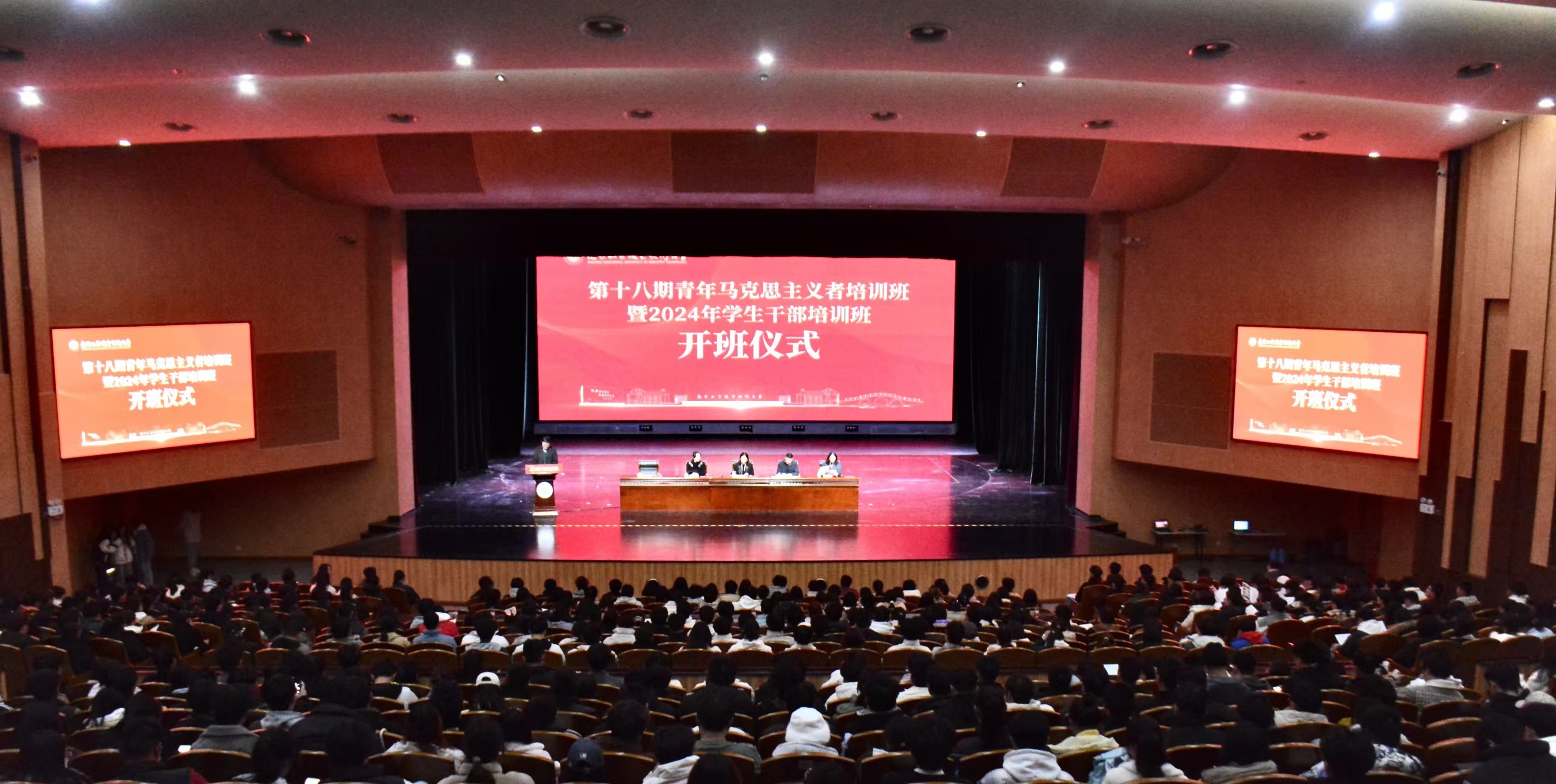 12月11日下午,永利官网第十八期青年马克思主义者培训班暨2024年学生干部培训班开班仪式在大学生创新发展中心炎培会堂隆重举行。学校党委常委、副校长魏萍,党委常委、党委组织部部长高宏彦,党委常委、党委宣传部部长刘畅,党委学生工作部(处)、团委等部门全体同志,青年讲师团师生代表,辅导员代表以及600余名学生干部参加开班仪式。