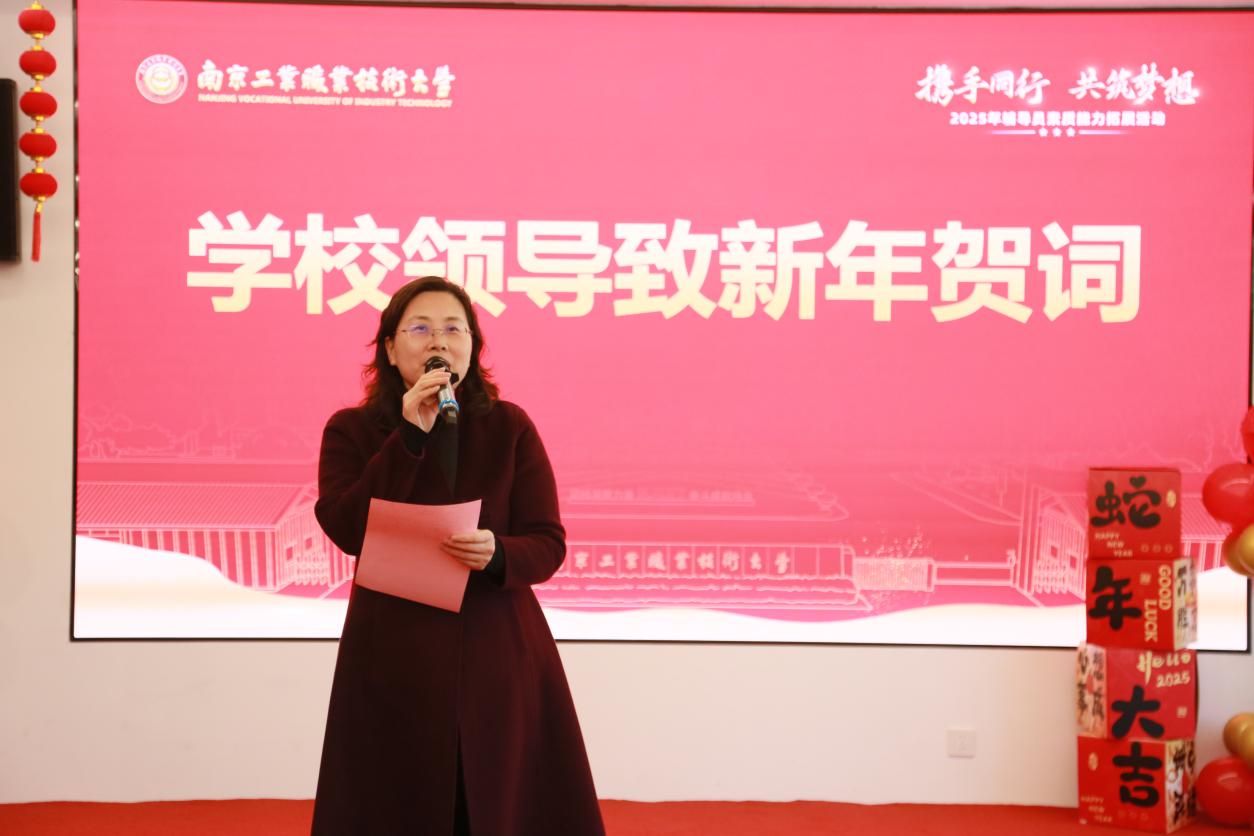 魏萍充分肯定2024年学生工作取得的成绩,并对全体辅导员提出期望:一是要能共同推动政策落地,让制度成为工作的有力支撑;二是要保持终身学习的热情,积累宝贵经验,提升工作效能;三是要牢牢坚守安全底线,时刻贴近学生生活,打造“全国领军、世界一流”职业技术大学的宏伟蓝图,她鼓励学生工作队伍的老师们勇担使命,绽放光芒,共同谱写学校发展的壮丽篇章!最后,魏萍向全体辅导员送上了新年的美好祝福。